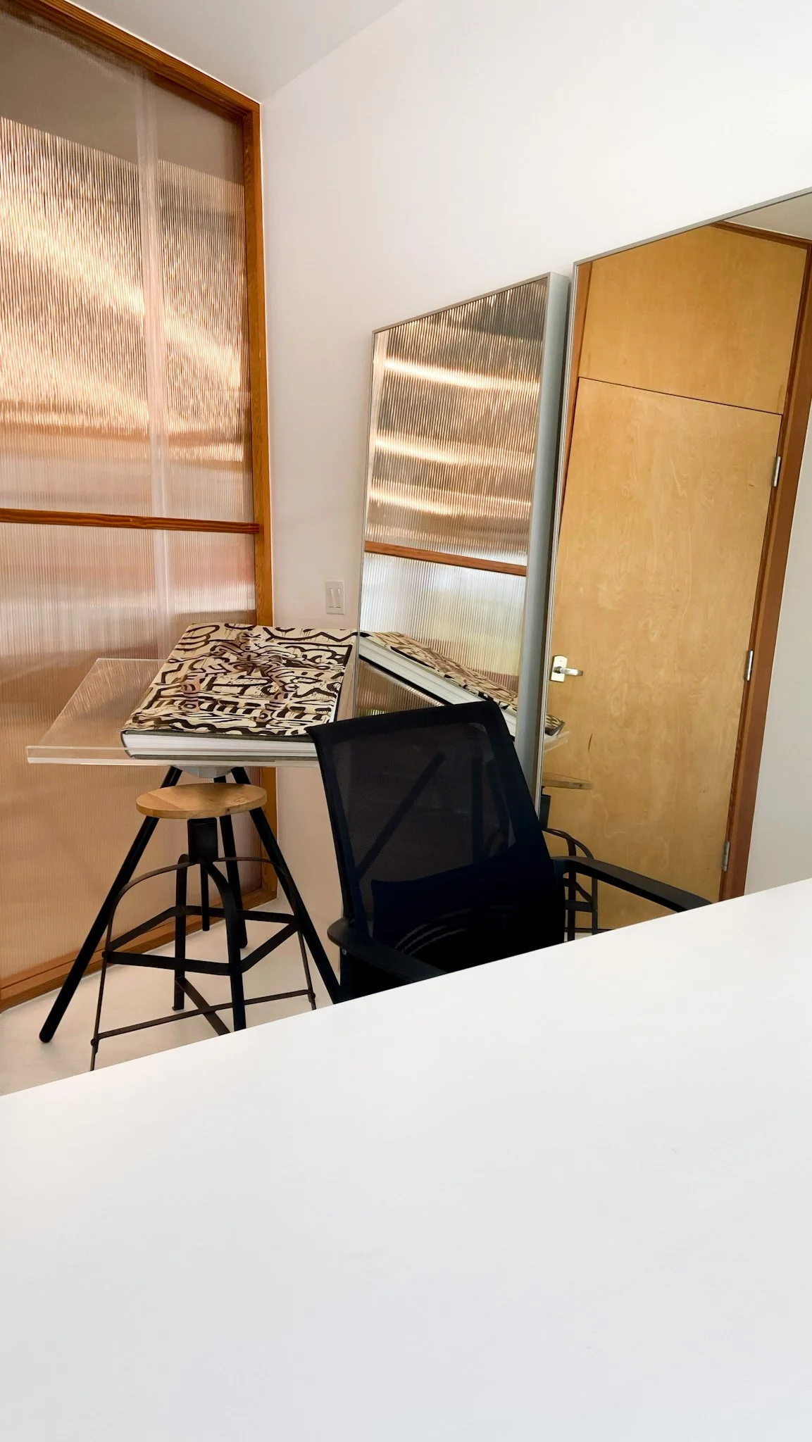 The Wood Box is a minimalist space for 2–3 people, equipped with an external monitor for presentations or focused work.